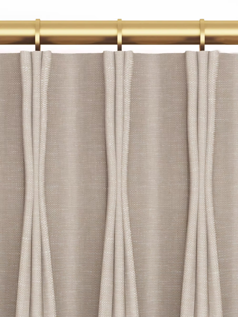Pinch pleat curtains are a highly decorative heading, drawing together lots of fabric into a tightly gathered and stitched bunch at the top. The permanently sewn-in pleats make for a smart finish, with elegant folds flowing from top to bottom. You can have pinch pleat curtains with either a pole or a track. And these curtains are one of the classic products of Zamorin Decorate.