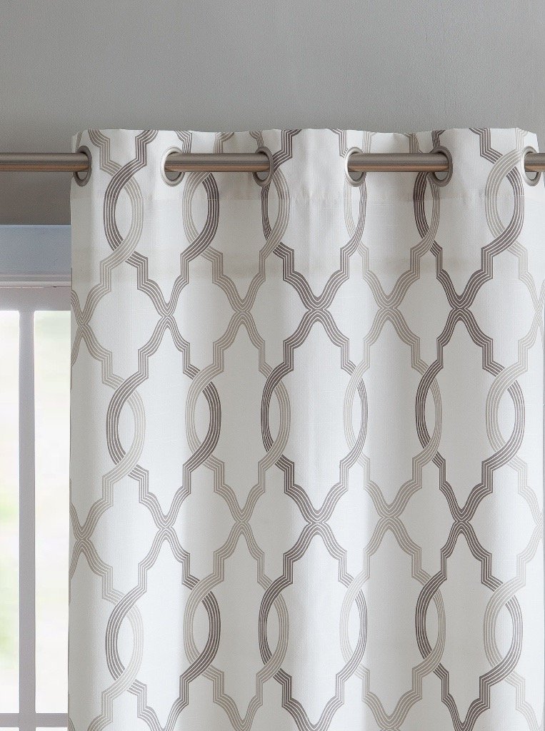 Curtains with a grommet top have metal rings punched into the fabric that allows them to slide along the rod easily. The grommet rings create a ripple fold when you feed them onto the rod, so they form uniform pleats without training your drapes.