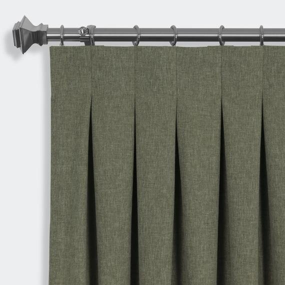 Inverted box pleated drapes have the fullness of the pleat on the back of the drape which creates a flat drapery face suitable for contemporary interior design. Box pleated drapes are typically stationary panels with clean, unbroken lines that are wonderful in silk, lightweight velvet, and everything in between.